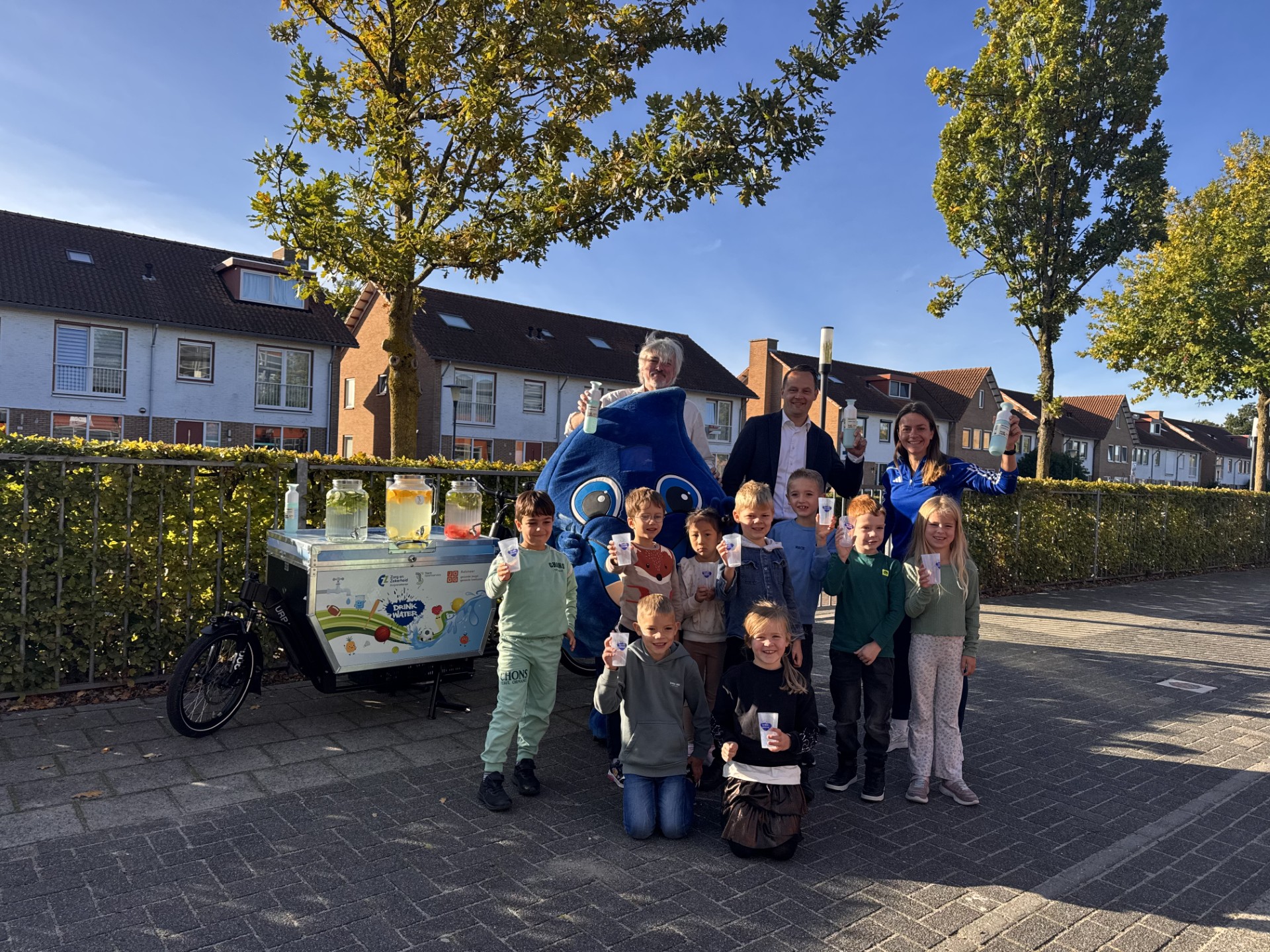 Door: redactie. Wethouders Bart Kabout (Jeugd & Onderwijs) en Sybrand de Vries (Duurzaamheid) hebben Doppers uitgedeeld aan leerlingen van groep 3 van basisschool De Brug. Ook mascotte Druppie was hierbij aanwezig. Op het schoolplein konden kinderen bij een waterbar verschillende soorten water proeven.