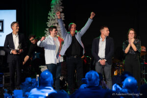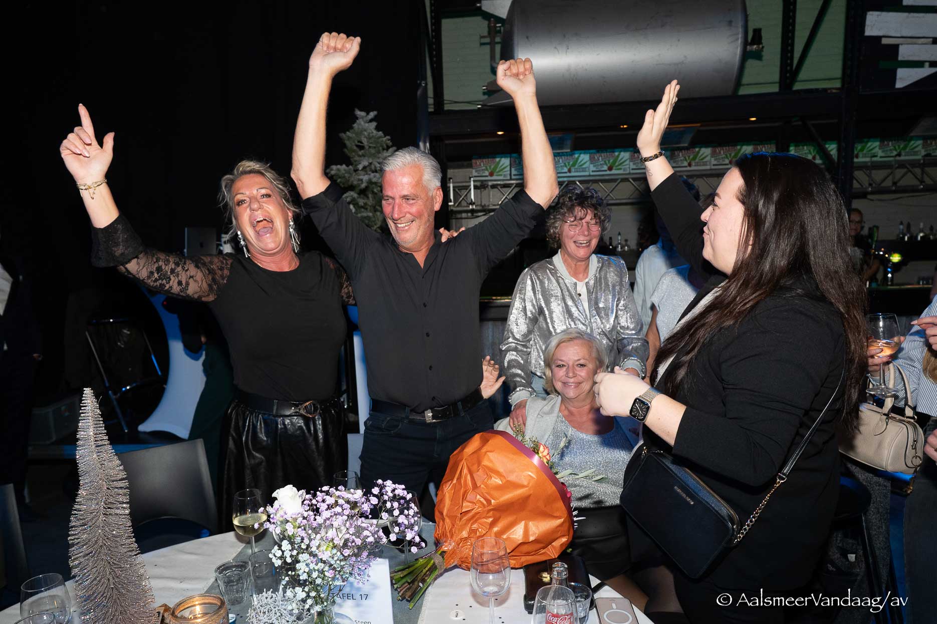 Het toetje van de verkiezing, de publieksprijs, smaakte misschien nog wel het best. Het aftellen van de logo’s op het scherm waarbij er steeds minder overbleven maakte het voor de kanshebbers bloedstollend spannend. Uit het tot het laatst overgebleven drietal was ‘Restyle uw Keuken’ naast Bibi’s Bijles en Slagerij Steen de grootste verrassing. De tafel van Steen was door het dolle heen toen het laatste logo overbleef. Zo kon het niet op voor de scharrelslagersfamilie voor wie de wekker vanmorgen om half zes heel anders af moet zijn gegaan dan anders.
