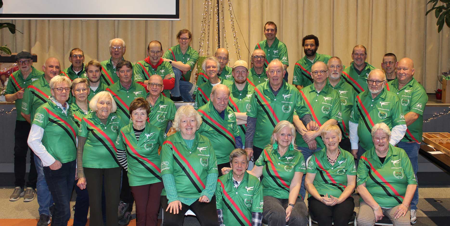 Door: redactie. In het voorjaar staat Sjoelclub Aalsmeer uitgebreid stil bij het 50-jarig bestaan maar vooruitlopend op dit jubileum kregen alle leden tijdens de laatste clubavond dit jaar een nieuw wedstrijdshirt. Het tricot met zowel het oude logo als het jubileumlogo kwam er dankzij sponsoring.