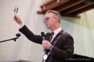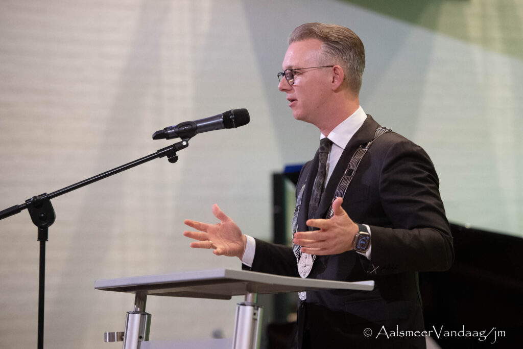 Bijzonder vond hij zijn herbenoeming tot burgemeester van Aalsmeer en hij dankte de aanwezigen voor het vertrouwen dat in hem was gesteld. “Het is een mooie baan, maar het kan variëren. Vaak ben je het ‘gouden lint’, iemand die iets extra’s toevoegt bij feestelijkheden, maar soms ben je ook het ‘toiletpapier’. In alle gevallen ben je dienstbaar aan de samenleving.”