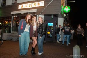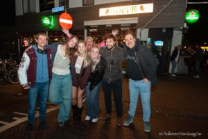 De feeststemming blijft overigens niet beperkt binnen de muren, op straat wordt er heel wat heen en weer gelopen tussen de verschillende uitgaansgelegenheden. Daar treffen we de Aalsmeerse Tess met zus en vriendin die binnenkort in de finale staat van de Miss Noord-Hollandverkiezing. Dat belooft een spannend nieuwjaar te worden.