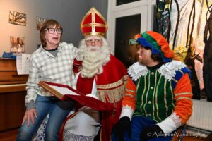 Het werd een hilarisch intermezzo, waarbij bleek dat Sint, nu hij zich niet te midden van ‘gelovigen’ bevond, zich wat minder bisschoppelijk gedroeg. Hij wist menigeen te verleiden tot het zingen van een passend lied, leerde het publiek het verschil tussen een groot en een klein applaus, maar moest ook constateren dat op schoot zitten bij Sint tegenwoordig eigenlijk niet meer kan.