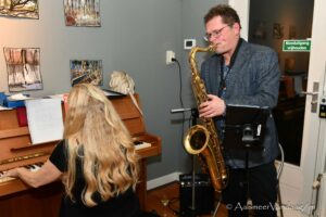 Voor de muziek zorgde Lisa Kaaijk, die achter de piano plaatsnam en ook zong. Haar optreden was bijzonder gevarieerd, met klassieke stukken, meezingers en later, toen de bekende saxofonist Robert Tuinhof aansloot, kunstig uitgevoerde jazzmuziek.