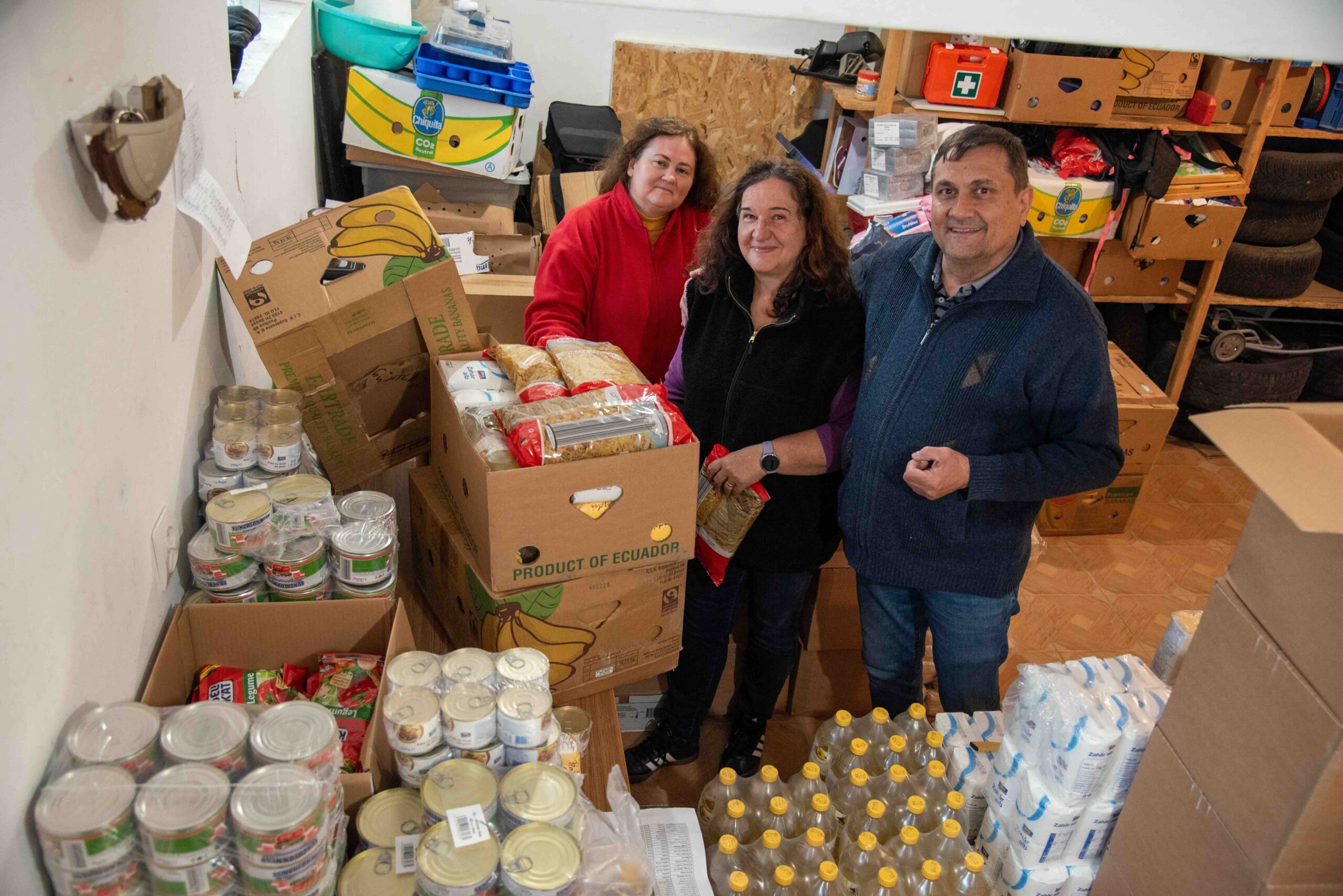 In een opslag onder een kerk worden maandelijks voedselpakketten gemaakt, die de medewerkers naar de allerarmsten brengen. “De hoop was dat de armoede zou verminderen door de aansluiting bij de EU in 2008, maar door de Europese regelgeving stegen de kosten van voedsel juist, terwijl de salarissen gelijk bleven. Inmiddels is dat iets verbeterd, maar veel Roemenen leven nog in grote armoede.”