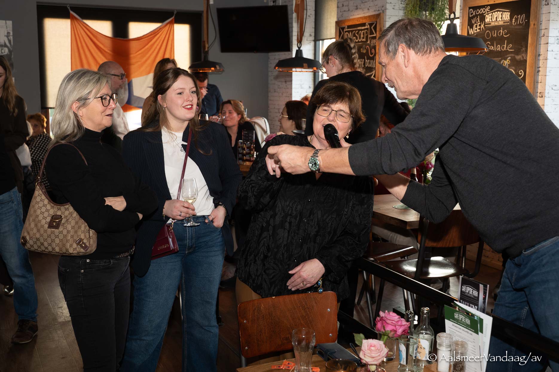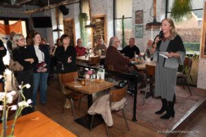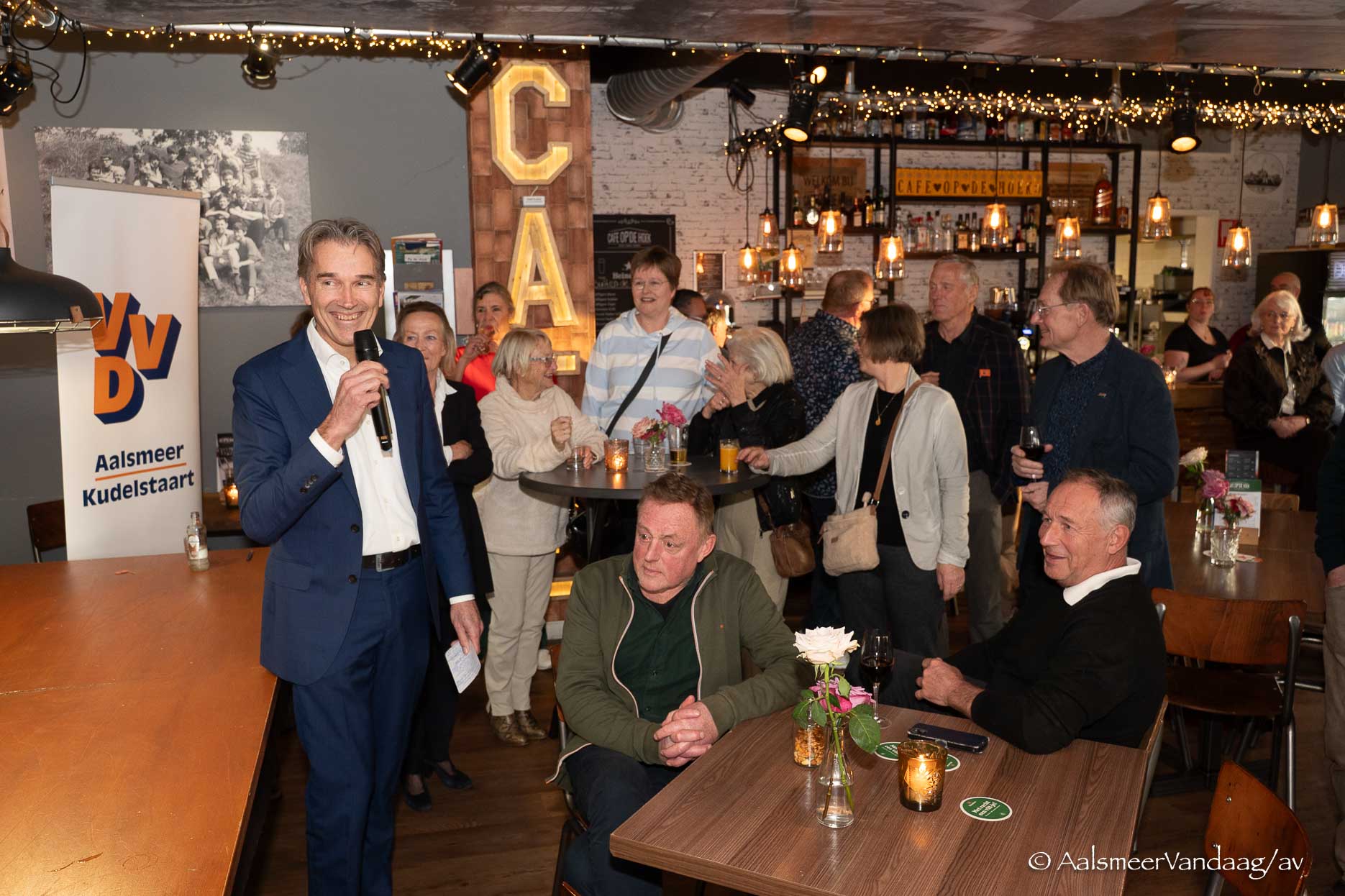 Maar goed, u begrijpt, een deel van de Kudelstaartseweg is voor mij een ‘Bad Memory Lane’. Maar wie weet zouden de speeches en gesprekken mij volop betoveren. Ik was net binnen toen Ric de Jong, voorzitter van VVD Aalsmeer Uithoorn, zijn speech begon. Ik hoopte op wat diepgang van wat het woord liberalisme hier in Aalsmeer inhield. Net zoiets als bij GroenLinks/PvdA en het CDA. Misschien heb ik niet goed opgelet of werkt mijn geheugen wat minder, maar ik heb het niet ontdekt. Wel dat hem uitgelegd moest worden dat de kleuren van de letters in het logo, vervangen waren door de kleuren rood, groen en zwart; de kleuren, zo werd hem verteld, van Aalsmeer. Na hem kreeg Sissi Mijwaart het woord. Natuurlijk, net als bij de andere partijen sprak zij vol trots over de namen die op de lijst stonden. Een goede menging van jong en oud, allemaal kanjers en, ons kent ons, allemaal bij de voornaam genoemd.