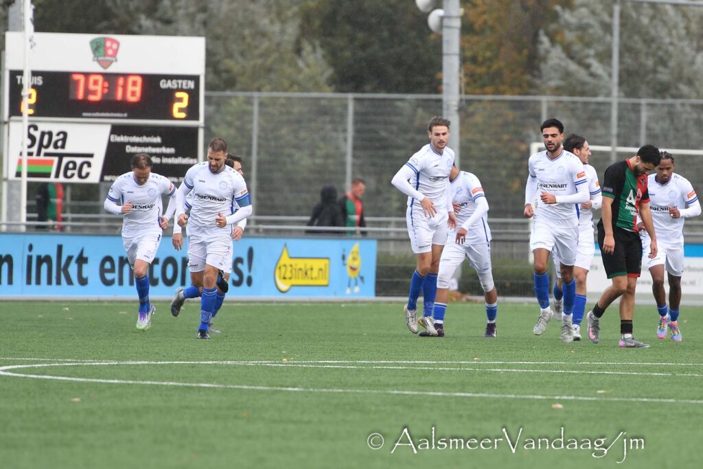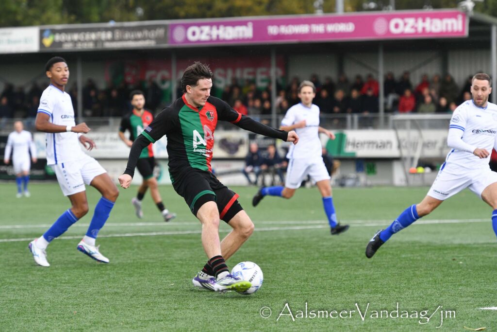 In de tweede helft werd de voorsprong uit handen gegeven. De ploeg kreeg het zwaar toen Steyn Bol een doorgebroken Purmersteijner tegen de grond werkte en daarvoor een rode kaart gepresenteerd zag. Met tien man moest Aalsmeer het laatste half uur overeind zien te blijven. Dat lukte ternauwernood. De aandringende opponenten kwamen gelukkig voor alles wat een rood-groen-zwart hart had, net niet verder dan twee treffers.