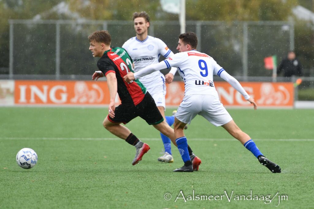 Op het kunstgrashoofdveld aan de Beethovenlaan kreeg het publiek vier treffers te zien, keurig verdeeld over twee wedstrijdhelften en alle vier tussen dezelfde palen. Voor rust was het Vincent Noordam die de score met een diagonaal schot opende en daarna met een afgemeten voorzet Ilias Ahamout in staat stelde koppend voor een 2-0 voorsprong te zorgen.