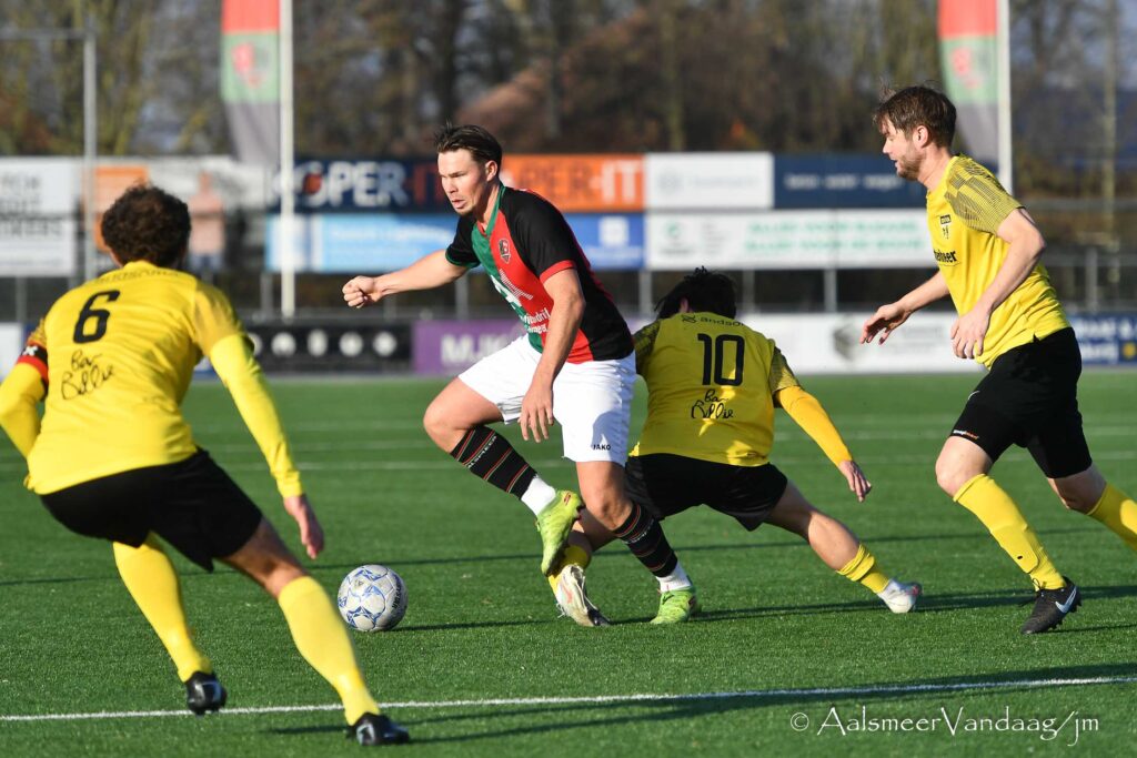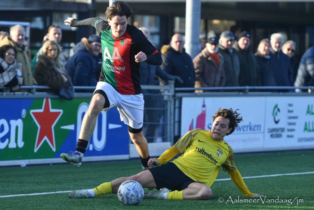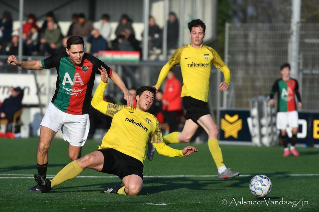 Na rust liep Aalsmeer uit naar een 3-1 voorsprong dankzij doelpunten van Vincent Noordam en Brian Iliohan en werd tevens geholpen aan een numerieke meerderheid na een rode kaart voor een DVVA-speler.