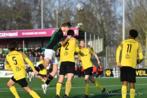 De competitie was al leuk maar is er na dit weekend reuze interessant op geworden doordat beide koplopers verloren. Zowel JOS/Watergraafsmeer als Kampong bleven puntloos. Dat geldt ook voor nummer 4 Ajax zodat de ranglijst als een harmonica in elkaar schuift en zelfs de ploegen in de middenmoot, waaronder Aalsmeer op een achtste positie, zicht blijven houden op een prijs aan het einde van het seizoen. Komende zaterdag mag Aalsmeer het in een uitwedstrijd opnemen tegen het Hilversumse Victoria dat slechts drie punten minder heeft.