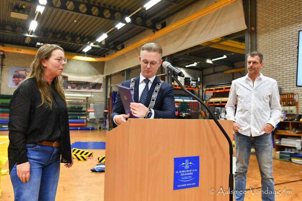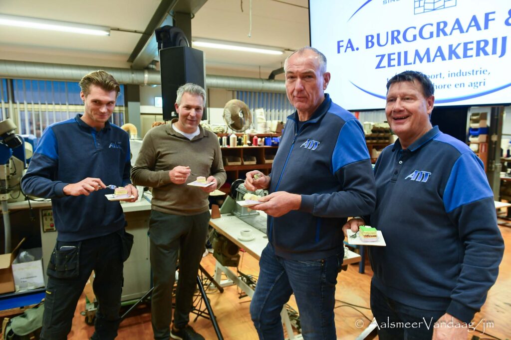Door: Jan Dreschler. Op 9 december werd bij Zeilmakerij Burggraaf & Zn aan de Turfstekerstraat het honderdjarig jubileum gevierd. Een bijzonder feit, zo benadrukte burgemeester Oude Kotte, want daarmee schaart het bedrijf zich in een illuster rijtje met onder meer carrosseriebouw Burgers, scheepswerf De Vries, WSV De Nieuwe Meer en de IJsclub Uiterweg.