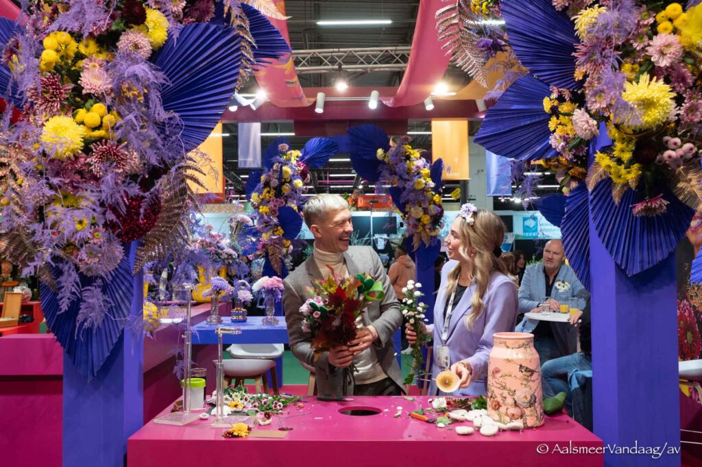 De beurs waarop bloemen- en plantenhandelaren elkaar ontmoeten en zich laten informeren over de ontwikkelingen, lijkt de laatste jaren steeds uitbundiger te worden. Iedere standhouder doet stevig zijn best om goede sier te maken want opvallen tussen vakgenoten doe je uiteraard niet met een standaard marktkraam. Dat levert fijne opdrachten op voor decorbouwers en stylisten die hiervoor worden ingehuurd. Zo zijn er tal van demonstraties, verkleedpartijen en originele productpresentaties die de beurs kleur geven.