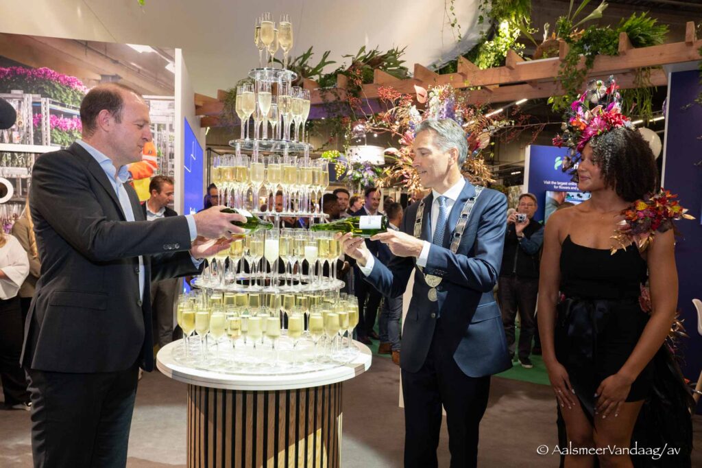 Namens de gemeente was locoburgemeester Sven Spaargaren aanwezig die tijdens het officiële moment waardering uitsprak voor Royal Flora Holland en de bloemenveiling het hart van de ‘global floral cultural industry’ noemde. “Het is veel meer dan een veiling; een ontmoetingsplaats tussen culturen en continenten en een inspiratie voor nieuwe ideeën. Mensen komen hier om te ontdekken, te netwerken in een sfeer van trots vakmanschap en vooruitdenken. Namens de gemeente feliciteer ik Royal Flora Holland met hun bijdrage aan de economie en de internationale reputatie van Aalsmeer.”